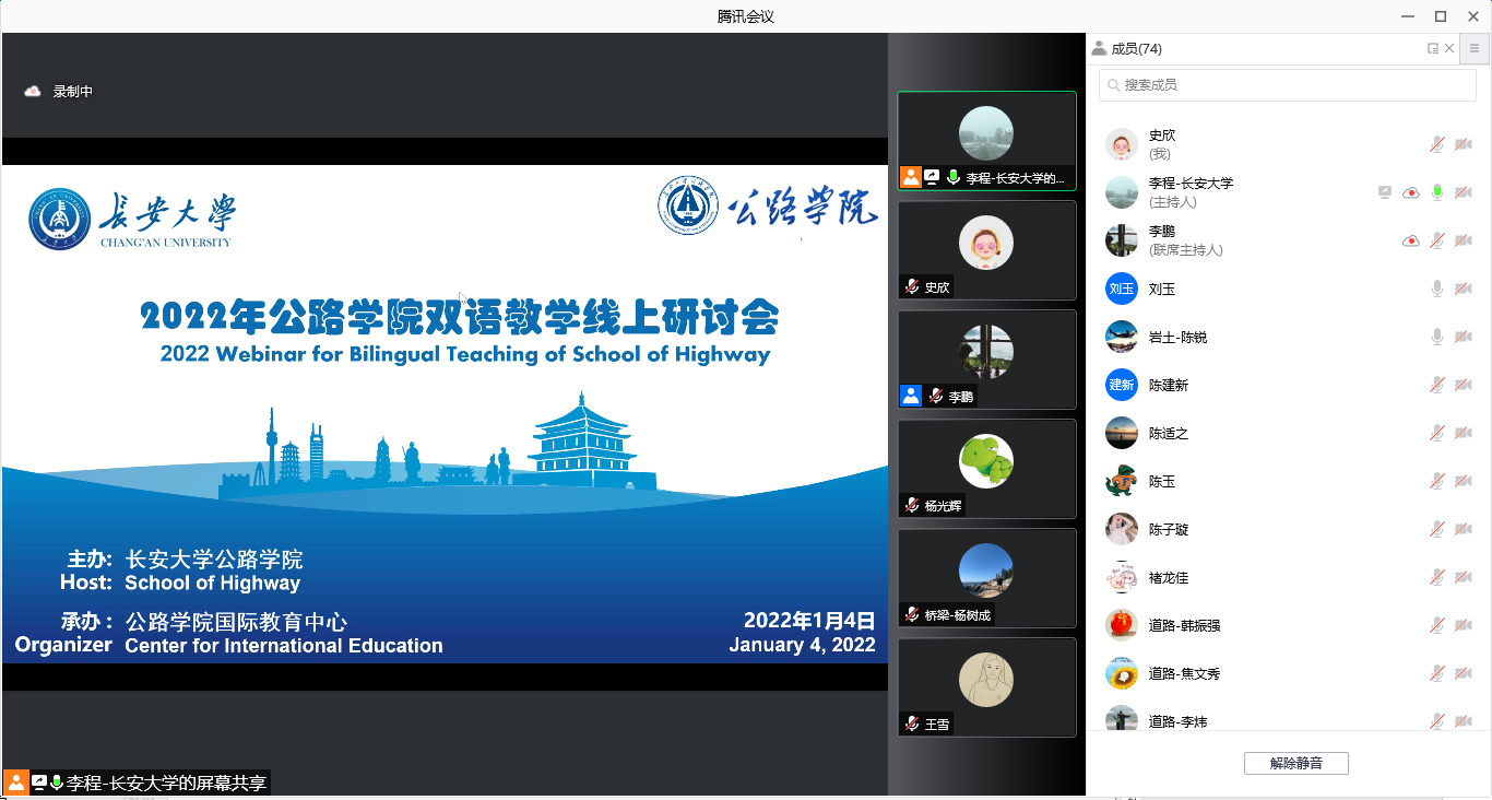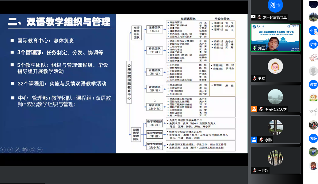 双语教学管理办法》,重点解读了双语教学组织与管理、双语教学基本要求、全英毕业设计基本要求、双语课程教学工作量考核与分配、全英毕业设计(论文)工作量考核与分配等关键内容。他强调双语教学的核心是专业内容,特色是双语,需要强化“专业能力”和“语言能力”的融合式培养。随后按照道路、桥梁、岩隧、管理与综合四个线上分会场,与会人员对新修订的《麦田影院