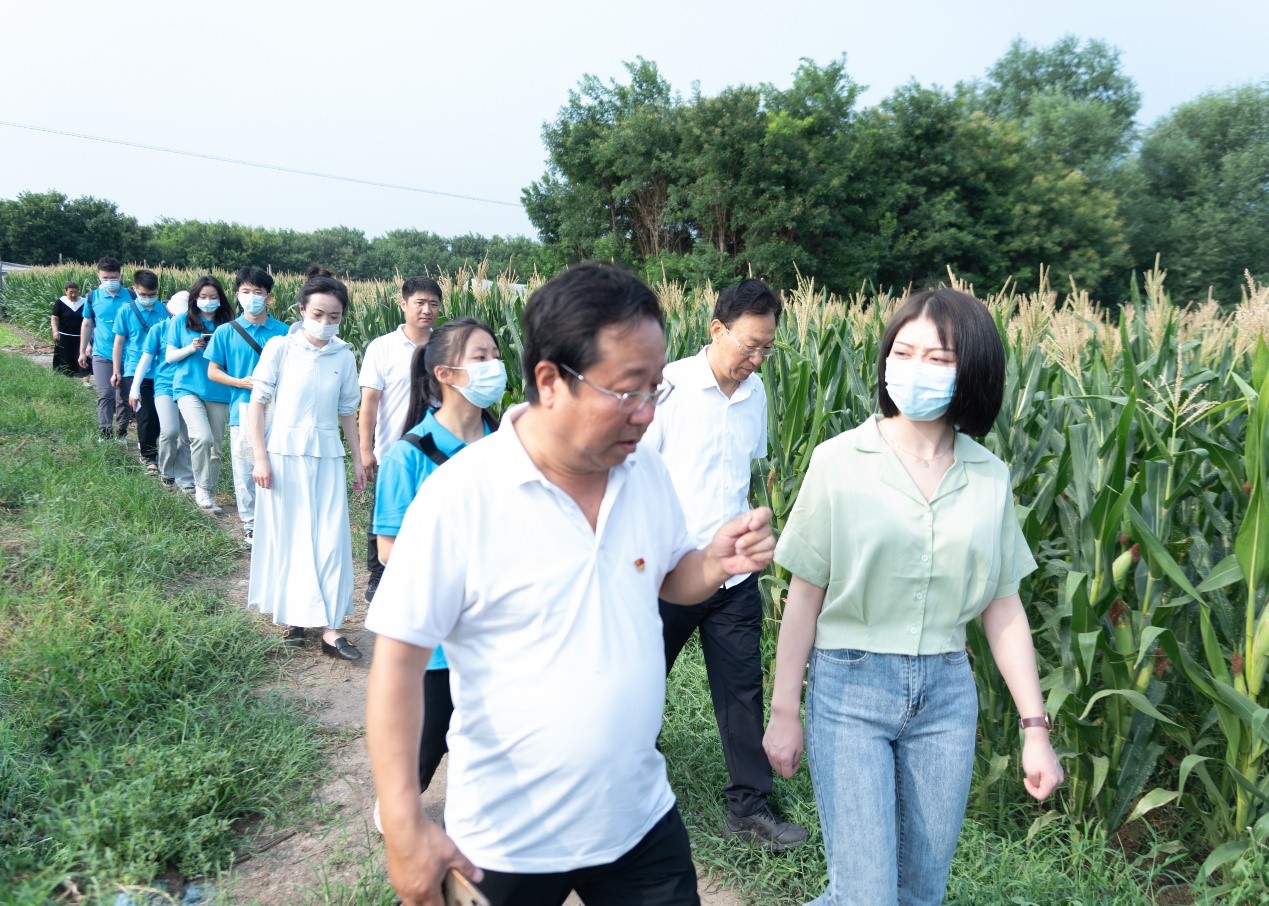 8月17日,实践队成员来到晨钟村农业产业园,苏园园围绕粮食安全、土地流转、现代化农业发展等问题向队员们介绍了该村农业发展情况,随后队员们对其产业园玉米生长及土地流转现状情况进行参观调研。部分成员通过参加高标准农田(农业产业园)工作组例会,对目前晨钟村土地流转的具体情况有了进一步认知。