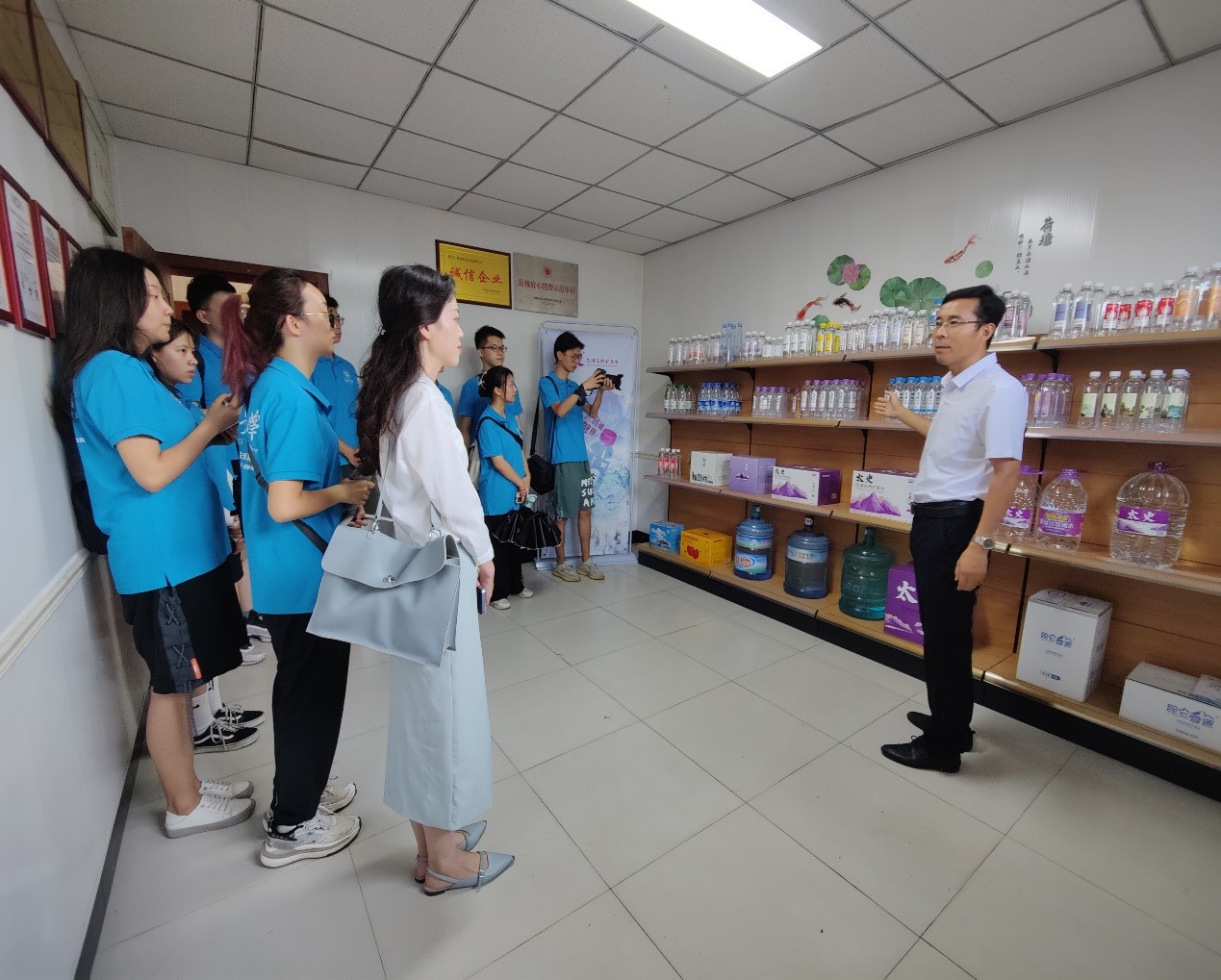 韩城龙泉创业园便是由陕西晨钟置业有限公司投资建设,通过吸纳创业团队和微小企业入驻园区,带动城乡富余劳动力就业、创业,从而推动乡村振兴产业发展。实践队员首先参观了园内企业陕西龙泉饮品有限公司,了解到公司在确保饮品质量的同时,也勇担社会责任,将失散儿童的照片及信息印在产品外包装上,目前通过这一渠道已找回3名失踪儿童。随后,实践队员走访了陕西华瑞邦医疗科技股份有限公司、陕西众协鑫服装商贸有限公司等园内企业。