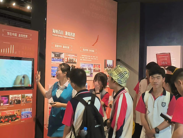 校园、校史馆和交通馆,并在图书馆前合影留念。在校史馆,夷陵中学师生跟随讲解员,走进麦田影院