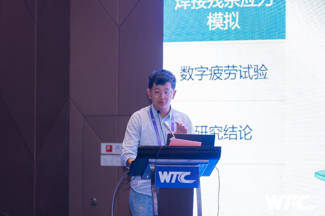 博士生李璞玉作了题为“斜拉桥钢桥面板顶板-U肋-横隔板过焊孔细节群数字疲劳试验”的报告,汇报了多场耦合作用下顶板-U肋-横隔板过焊孔细节群处典型疲劳裂纹扩展行为的数字疲劳试验研究成果。