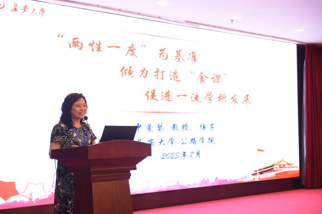 申爱琴教授做题为《两性一度为基准,倾力打造金课,促进一流学科发展》的主旨报告,胡力群教授做题为《工程实践进课堂》的专题报告,杨旭教授做以题为《路用集料性能》的青年教师授课演示。会议期间,学院教师结合新时代“交通强国”战略需求,与参与人员就课程体系优化、教学内容更新、一流教材建设、课程思政、创新创业教育、教育信息化等开展了深入交流和讨论,对提升公路交通类专业人才培养质量起到了积极作用。