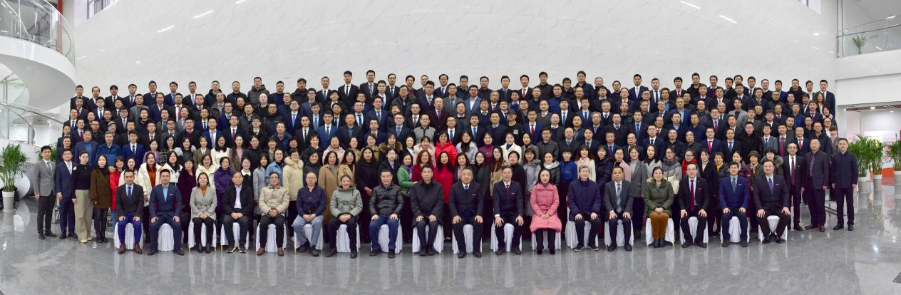 会前,学院全体教职工和近四年荣休老师在学院新大楼一楼大厅合影留念。