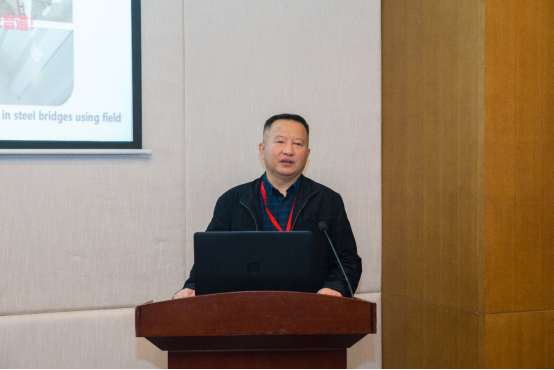 会议期间,王春生教授主持大会报告,并在专题论坛上作了题为“斜拉桥钢桥面板数智化疲劳监测评估与冷维护新技术”的报告,系统介绍了钢桥疲劳数字化、智能化监测评估技术以及疲劳冷维护新技术的最新研究进展