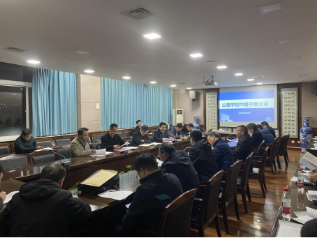 在南校区北院学术交流中心5楼第五会议室召开了中层领导干部大会,学院领导班子成员、各系(中心)主任、副主任、各科室负责人参加会议。大会由学院党委书记张久鹏主持。