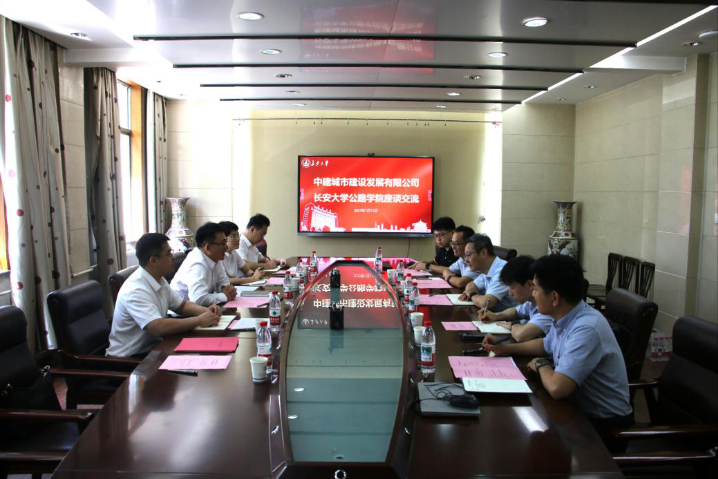 中建城市建设发展有限公司人力资源部经理王湘君、中建城市建设发展有限公司西北分公司执行董事周鹏飞、中建城市建设发展有限公司人力资源部马鉴琪、中建城市建设发展有限公司西北分公司综合办公室何君,学院院办主任王志坤、岩土工程系教师赵瑞欣、团委副书记李璟瑜等参加座谈。