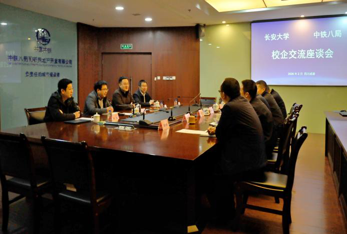 2月5日上午,张久鹏一行来到四川路桥建设集团股份有限公司(以下简称“四川路桥”),与四川路桥党委副书记、董事赵志鹏,四川蜀道养护集团有限公司党委书记、董事长王世法及相关部门负责人座谈交流。赵志鹏对学院一行的到访表示热烈欢迎,并详细介绍了公司的基本情况、发展布局与标志性成果,期待未来能与学院开展更深层次、更广领域的合作。张久鹏代表学院对公司多年来在毕业生招聘、学生实习实践等方面给予的大力支持表示衷心感谢,希望双方在现有合作基础上,进一步拓展产学研深度融合的新模式。会前,学院一行还参观了四川路桥企业展厅。