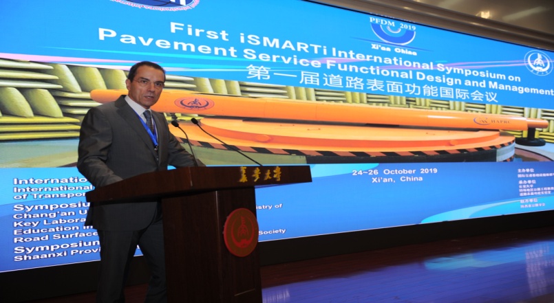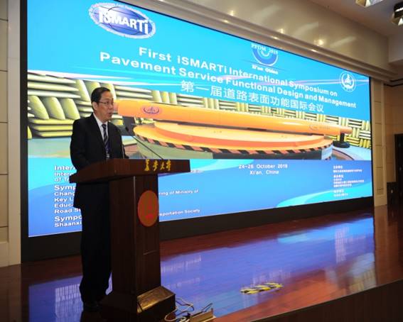 From October 24 to 26, the 1st iSMARTi International Symposium on Pavement Service Functional Design and Management, PFDM Symposium 2019, sponsored by Changan University and jointly organized by the Shaanxi Provincial Highway Society, was grandly held at the Academic Exchange Center of Changan University. The theme of this conference is "Pavement Service Function Design and Management", which mainly involves the latest research results of pavement anti-skid safety, noise reduction, comfort, surface texture characteristics, etc.. More than 260 well-known scholars and professionals from 16 countries and regions including China, Portugal, the United States, the United Kingdom, Canada, Sweden, the Netherlands, Italy, Greece, Singapore, Japan, Australia, New Zealand, Hong Kong, Taiwan, and Malaysia participated in the event. Xue Sheng Gaozheng Senior Engineer, Deputy Director of Shaanxi Provincial Department of Transportation, Niu Sishengzheng Senior Engineer, Chief Engineer of Gansu Provincial Department of Transportation, and leaders of relevant departments of School and College were also invited to attend the opening ceremony.