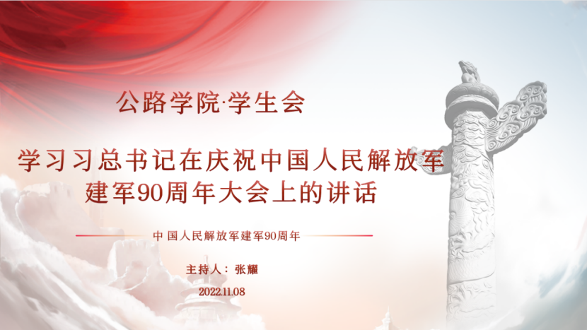 学生会全体成员于线上集中学习中国人民解放军建军 90 周年大会讲话精神。本次会议由学生会主席团成员张耀主持,学生会指导老师张吉宁老师出席本次活动。