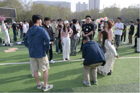 此次联谊活动为搭档组队,抽签分配,男女两人组成小组通过相互配合协作的方式完成各项趣味游戏挑战获取积分,凭累计的积分决出名次、兑换纪念品。活动现场气氛热烈,同学们积极参与,在一片欢声笑语中不断增强同学们的协作能力、情感交流、团队意识及责任意识。