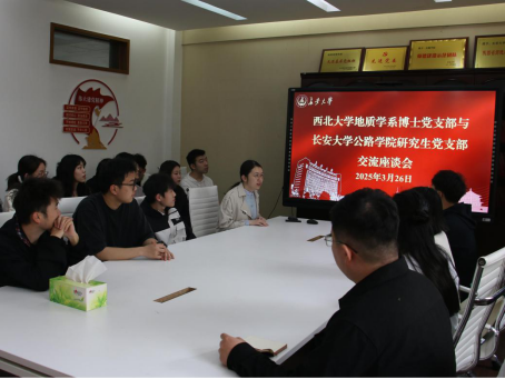 党建活动室召开座谈交流会。许元珺对西北大学地质学系博士党支部的到来表示热烈欢迎,希望双方在党员教育、活动开展等方面加强合作与交流,麦田影院